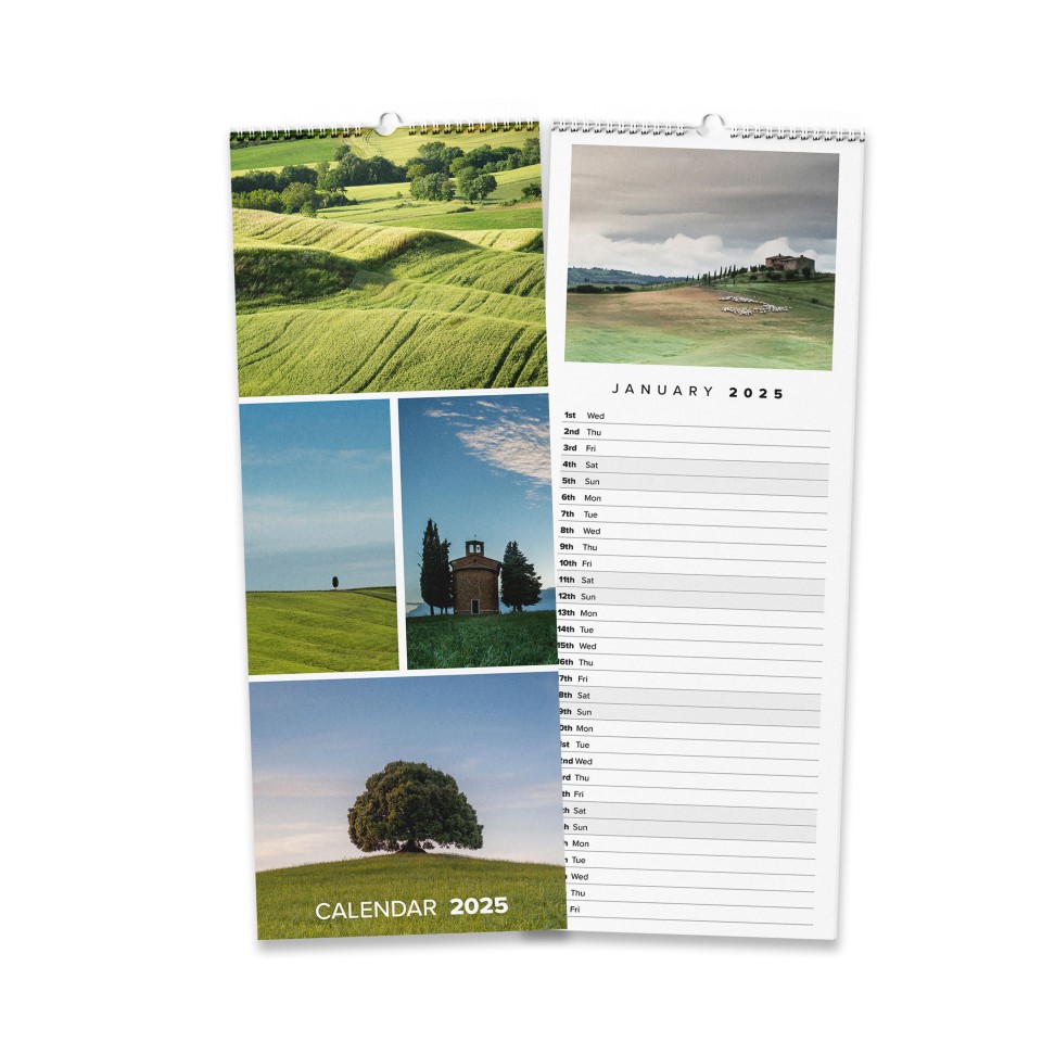 Each calendar is produced with hanging hook and thumb cut to give a smart finish for easy end use. Printed on 200gsm paper stock really gives the calendar some bulk, and gives a quality feel to the product. The additional weight to the cover offers more quality.